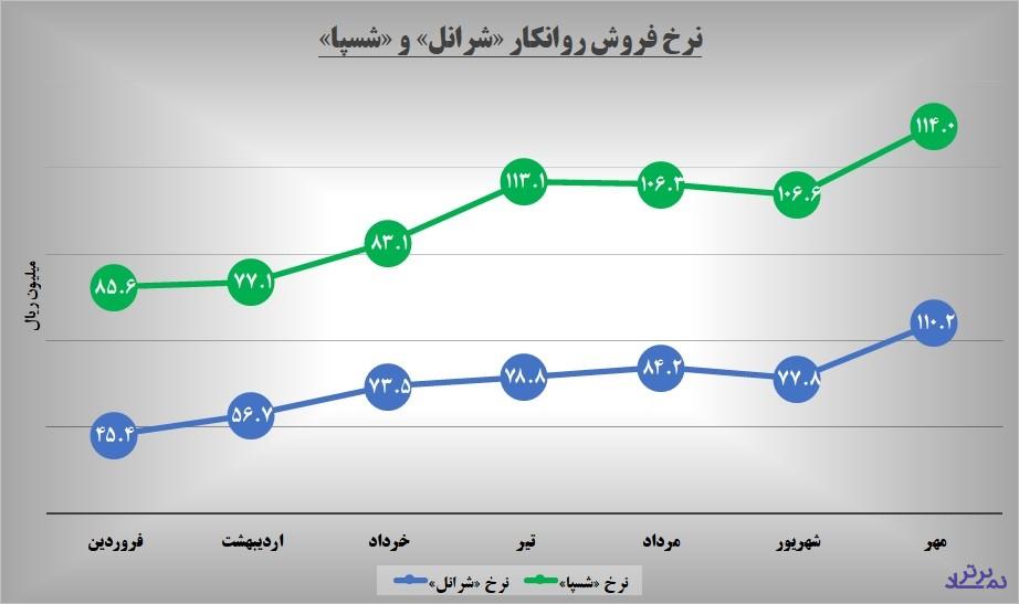 البته نرخ فروش روانکار در «شسپا» بالاتر از «شرانل» است که البته در مهر ماه این اختلاف کمتر شد؛ در حالی که در ابتدای سال نرخ فروش روانکار در «شرانل» تقریبا نصف نرخ «شسپا» بود.