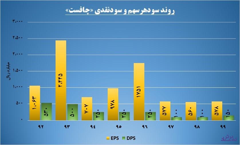 بررسیها نشان میدهد که هیات مدیره «چافست» علاقه چندانی به تقسیم سود بالا ندارد و ترجیح میدهد در حساب سود انباشته ذخیره شود و افزایش سرمایه دهد تا این که با تقسیم سود نقدی، موجب خروج نقدینگی از شرکت شود.