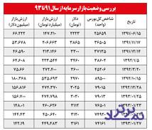 اما تغییر روند بازار سرمایه در 2 سال آخر فعالیت دولت دهم و 2 سال ابتدایی دولت یازدهم، نشان میدهد تغییرات بورس در سال 92 بسیار سریع اما در ابتدای سال 93 با کندی عجیبی رو به رو میشود. در جدول ذیل تغییرات شاخص بورس در سالهای 91، 92 و ابتدای سال 93 قابل مشاهد است. در سالهای 91 و 92 تغییرات نرخ ارز، عدد 200 درصد را به نام خود ثبت میکند و قیمت دلار در بازار آزاد از 1200 تومان به عدد 3600 میرسد. شاخص بورس نیز پس از وقفهای کوتاه از کانال 25 هزار در شهریور 91 عبور کرده و تا مرز 75 هزار حرکت میکند. البته همانطور که در جدول بالا مشاهده میشود شاخص در دی ماه 92 به عدد 89 هزار نیز میرسد اما در پایان سال 92 با ریزش همراه بوده و با عدد 79 هزار سال 92 به پایان میرسد. در اولین ماه از سال 93 اتفاقی در بازار سهام رخ داد که گویی قرار است در سال 99 نیز تکرار شود یعنی ریزش هنگفت و سنگین بازار که تنها در مدت دو روز یعنی 23 تا 24 فروردین ماه، بیش از 9 هزار میلیارد تومان خسارت بر باد آورد.