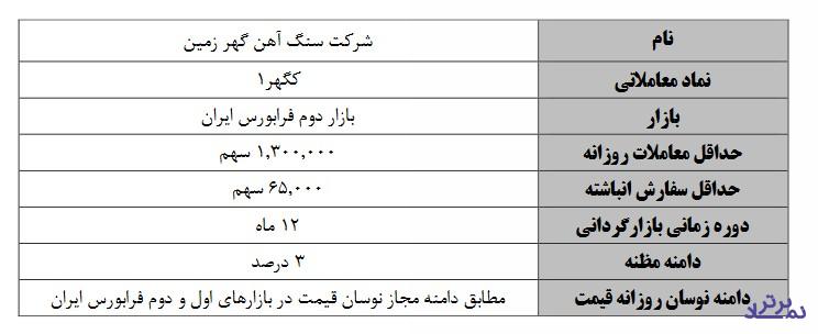 حداقل حجم معاملات روزانه یک میلیون و ۳۰۰ هزار و حداقل حجم سفارش انباشته نیز ۶۵ هزار سهم اعلام شده است.