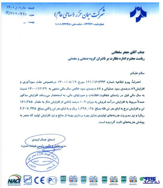 بر اساس این گزارش، افزایش مذکور مربوط به افزایش درآمد فروش، افزایش نرخ و نیز مدیریت هزینههای تولید محقق شده است.