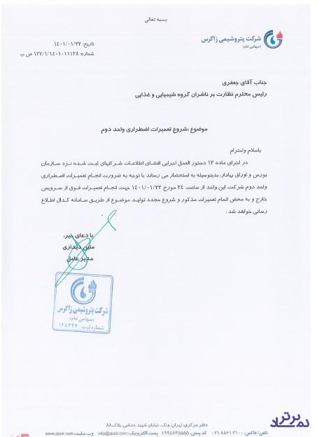 به گزارش نماد برتر- شرکت پتروشیمی زاگرس از توقف بخشی از فعالیتهای شرکت خبر داد.